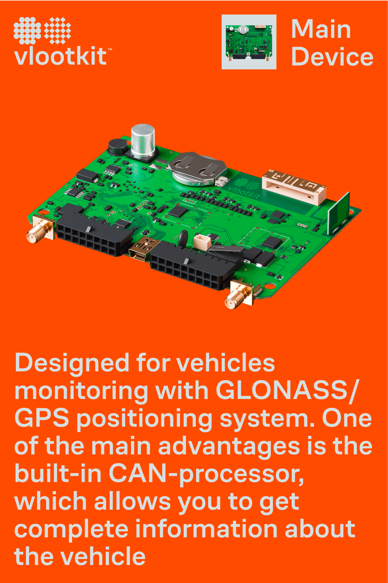 Since there is a Dutch word in the name, the main accent color during the palette was orange and a complimentary green color was selected to it, which rhymes with the green color of the board and speaks about the technological, hardwired origins of the product.